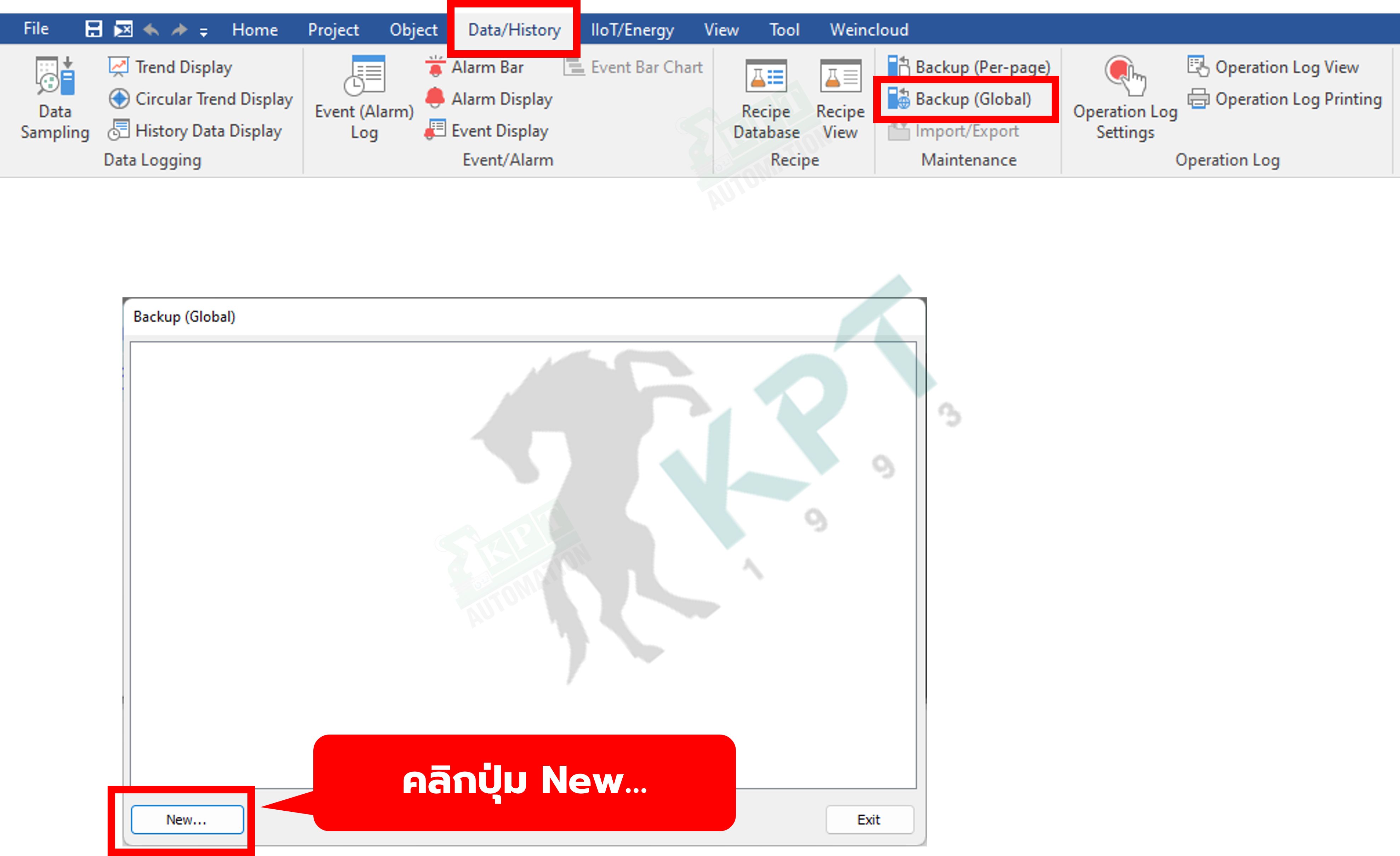 Weintek | Export Data Sampling เป็น .CSV ไฟล์ด้วย Backup (Global)